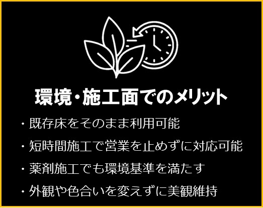 タイルや石材の美観を保ちながら、安全な歩行環境を実現