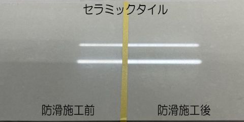 ③効果確認:施工前後の滑りにくさを比較し、その効果を実感していただきます。効果にご納得いただければ、お見積りの提出をさせて頂きます。